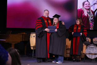 Pastor Jim and Shannon as she hugs graduate, Danielle Jones.