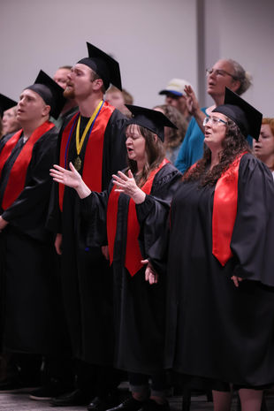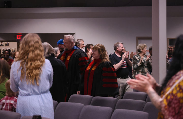 Pastor Lew, Pastor Lorri, Pastor Shannon & Pastor Jim listen to Neal Jones give his Valedictorian speech.
