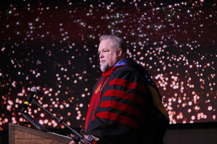 Pastor Lew Wootan speaking the Presidential address at 2024 graduation for River Impact University (RIU).